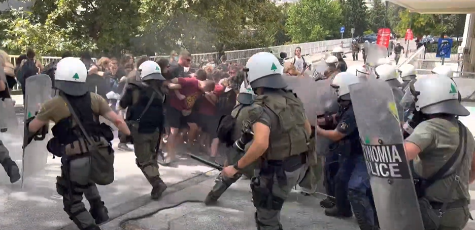 Σύμφωνα με πρώτες πληροφορίες του GRTimes, εκτοξεύτηκαν από πλευράς συγκεντρωμένων διάφορα αντικείμενα, όπως αβγά και μπουκάλια προς την ομάδα της ΟΠΠΙ, με τις αστυνομικές δυνάμεις, που ήταν παραταγμένες στο σημείο, να απαντούν με χρήση χημικών, προκειμένου να τους διαλύσουν.