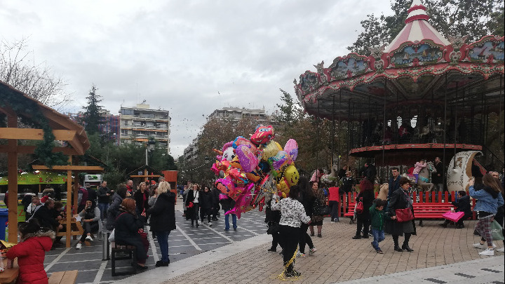 Στην Πλατεία Αριστοτέλους συγκεντρώθηκαν δεκάδες νέοι και συνοδεία μουσικών οργάνων είπαν τα κάλαντα και χριστουγεννιάτικα τραγούδια.