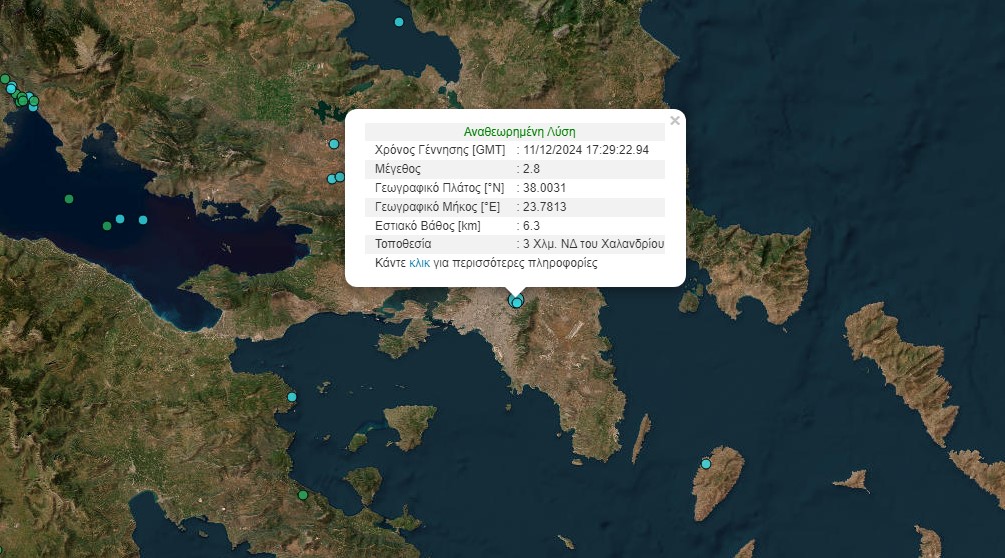 Ο δεύτερος σεισμός μεγέθους 2,8 Ρίχτερ σημειώθηκε στις 19:29. Το επίκεντρο εντοπίζεται στα 3 χλμ ΝΔ του Χαλανδρίου. Το εστιακό βάθος υπολογίστηκε στα 3 χλμ.