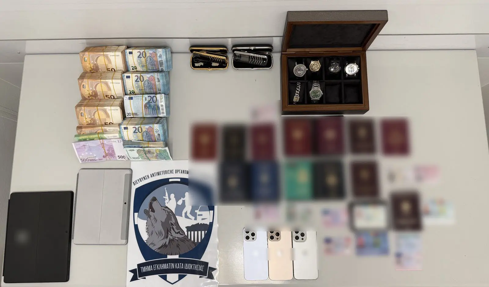 Στο πλαίσιο της επιχείρησης που πραγματοποιήθηκε από την ΕΛ.ΑΣ, αμφότεροι εντοπίσθηκαν στον Διεθνή Αερολιμένα Αθηνών «Ελ. Βενιζέλος», όπου ακινητοποιήθηκαν με τη συνδρομή των Αρχών του αεροδρομίου, προτού αποχωρήσουν για τρίτη χώρα. Κατά τον έλεγχο των στοιχείων τους, διαπιστώθηκε ότι χρησιμοποιούσαν πλαστά έγγραφα ταυτοποίησης, με φερόμενες Αρχές έκδοσης αυτές της Βουλγαρίας, της Ρουμανίας και της Ρωσίας.