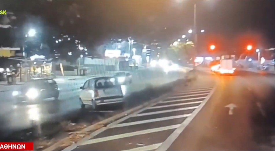 Στις εικόνες που έχουν γίνει viral, το ασημί αυτοκίνητο κινούταν μόνο του στη λεωφόρο Αθηνών, διέσχισε σχεδόν κάθετα το δρόμο με τους οδηγούς να το αποφεύγουν από τύχη.