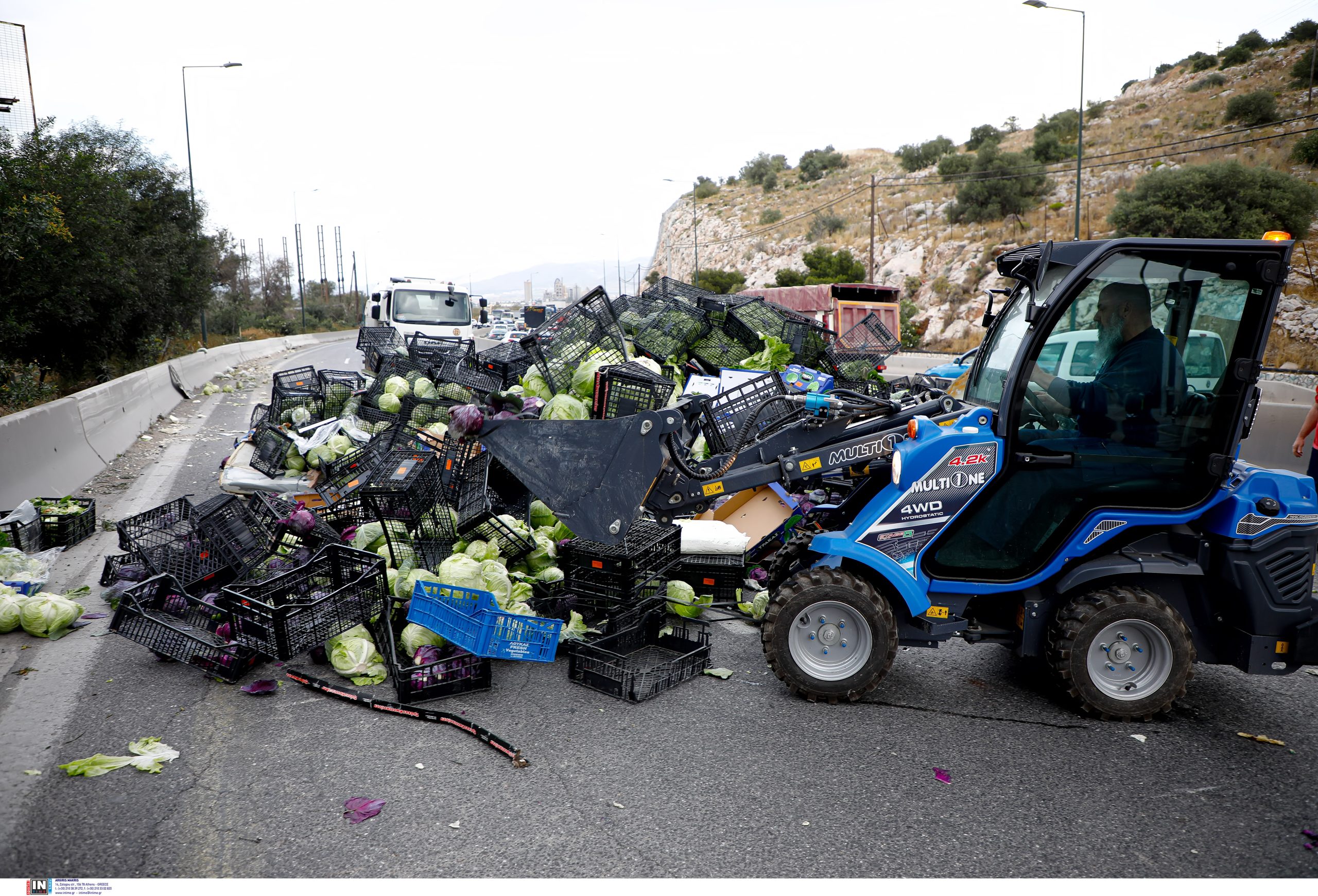 Στο σημείο έχουν σπεύσει Αστυνομία και Πυροσβεστική Υπηρεσία, ενώ γερανός βαρέων οχημάτων κατάφερε να σηκώσει το όχημα και προσπαθεί να το απομακρύνει από το οδόστρωμα.