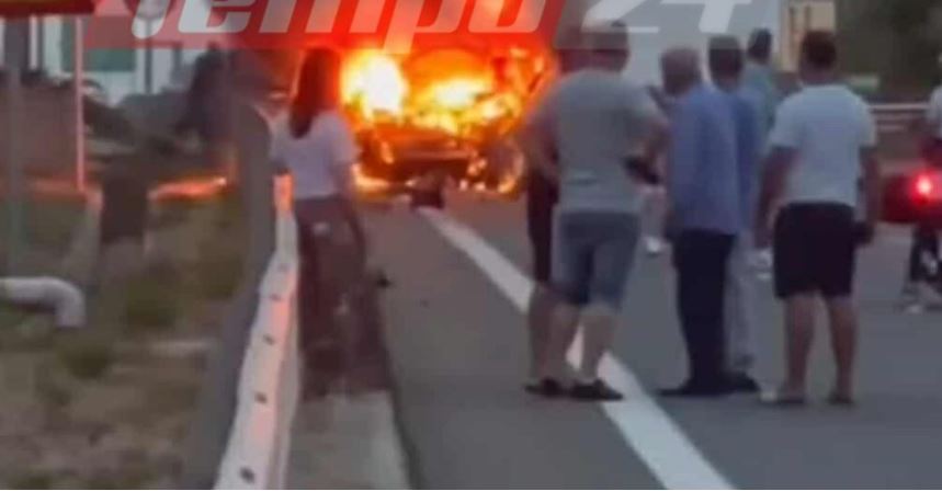 Μετά τη σύγκρουση το ένα όχημα έκανε τρεις τούμπες και κατέληξε στο κράσπεδο, με αποτέλεσμα να τυλιχθεί στις φλόγες.