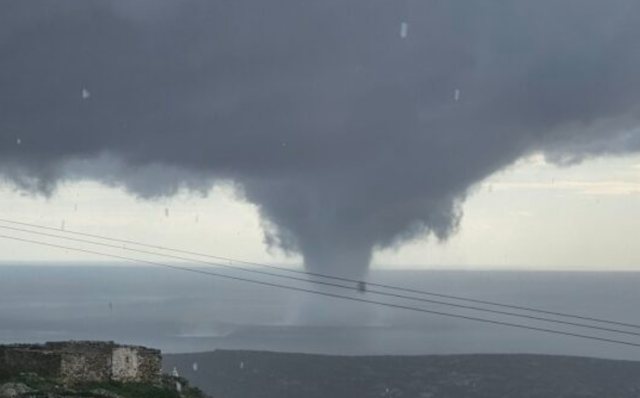 Ένα εντυπωσιακό και σπάνιο φαινόμενο καταγράφηκε το μεσημέρι της Τρίτης στην θαλάσσια περιοχή Άνω Μερά Φολεγάνδρου όταν υδροστρόβιλος έκανε την εμφάνισή του.