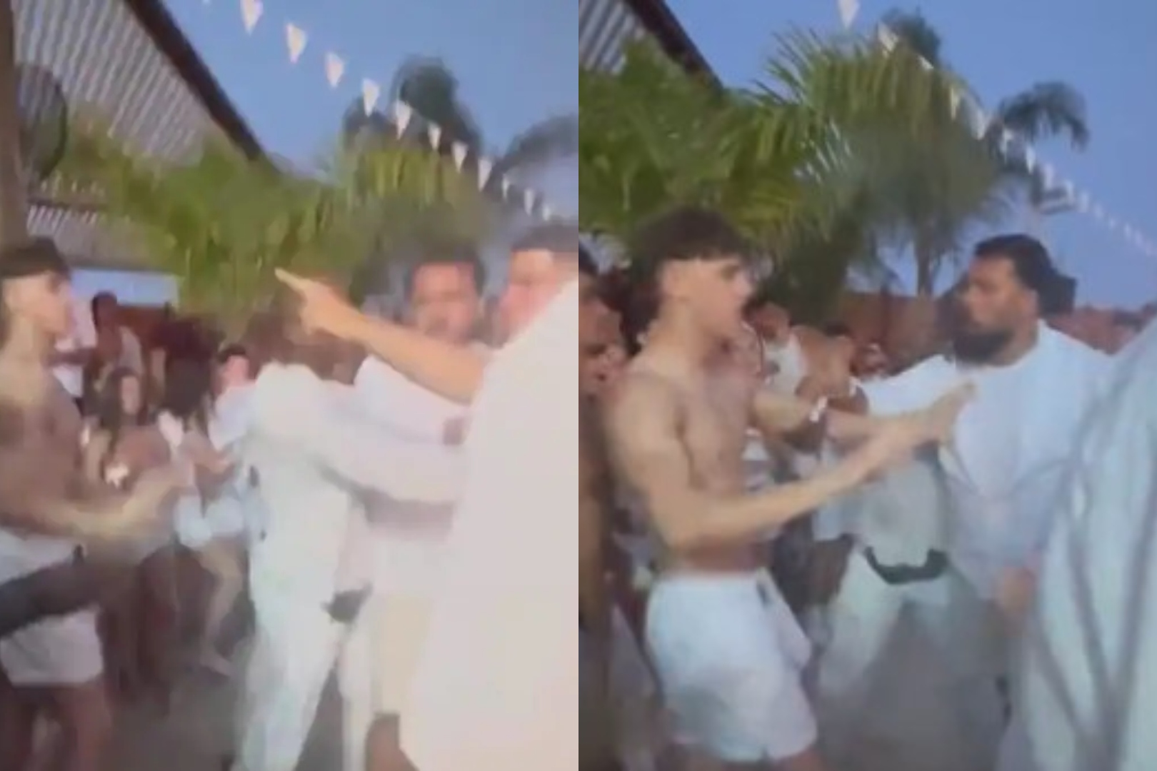 Πιο συγκεκριμένα, όπως φαίνεται σε βίντεο που δημοσίευσε η Daily Mail, δύο νεαροί άνδρες με λευκά σορτς και ξεκίνησαν να τσακώνονται με μία άλλη ομάδα μεγαλύτερων σε ηλικία ανδρών που φορά επίσης λευκά ρούχα.