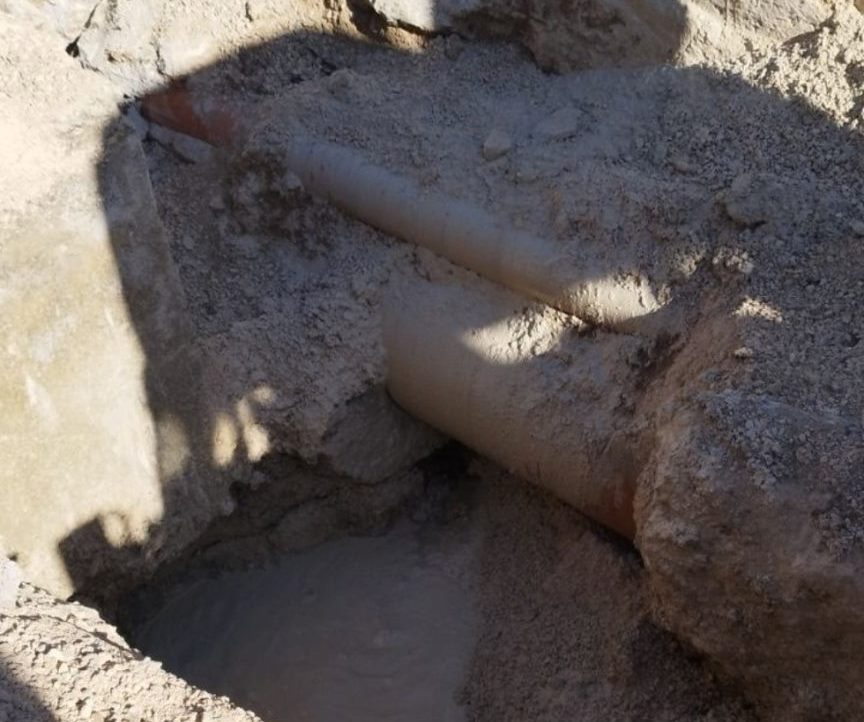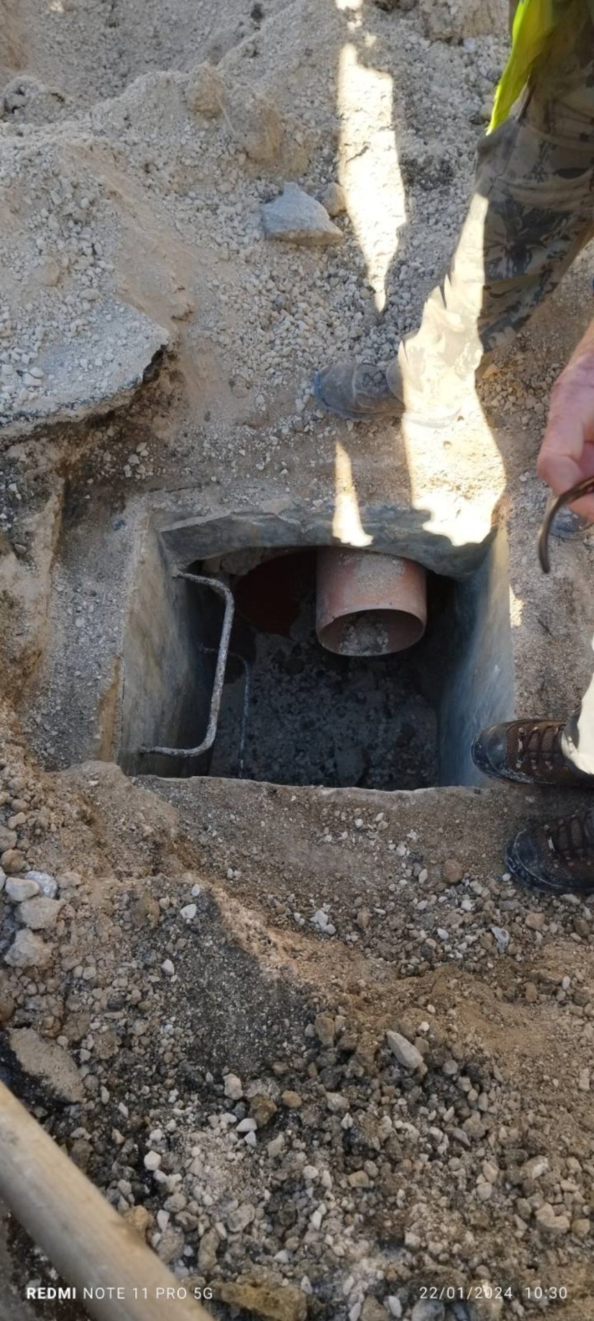 2. Αγωγοί αποχέτευσης ομβρίων υδάτων πλαστικοί σε συναρμογή με αυγοειδή οχετό τσιμεντένιο με εμφανές κενό στο κάτω μέρος . Από το κενό κάτω από τους αγωγούς αποχέτευσης διέρχονταν τα όμβρια ύδατα και κατέληγαν πάνω στον σιδερένιο αγωγό (Φ500) με αποτέλεσμα – σε συνδυασμό με τις τρεις τρύπες – να δημιουργείται σπηλαίωση και ανάμειξη των ομβρίων με τον αγωγό ύδατος Η ΔΕΥΑΖ ενημερώνει ότι οι τρύπες κλείστηκαν και σφραγίστηκαν οι εισροές, ενώ διοχετεύθηκε νερό με χρώμα, από το φρεάτιο ομβρίων μπροστά στο υπαίθριο θέατρο και διαπιστώθηκε ότι πλέον δεν υπάρχει κάποια αστοχία, ενώ αποκαταστάθηκε και η τομή.