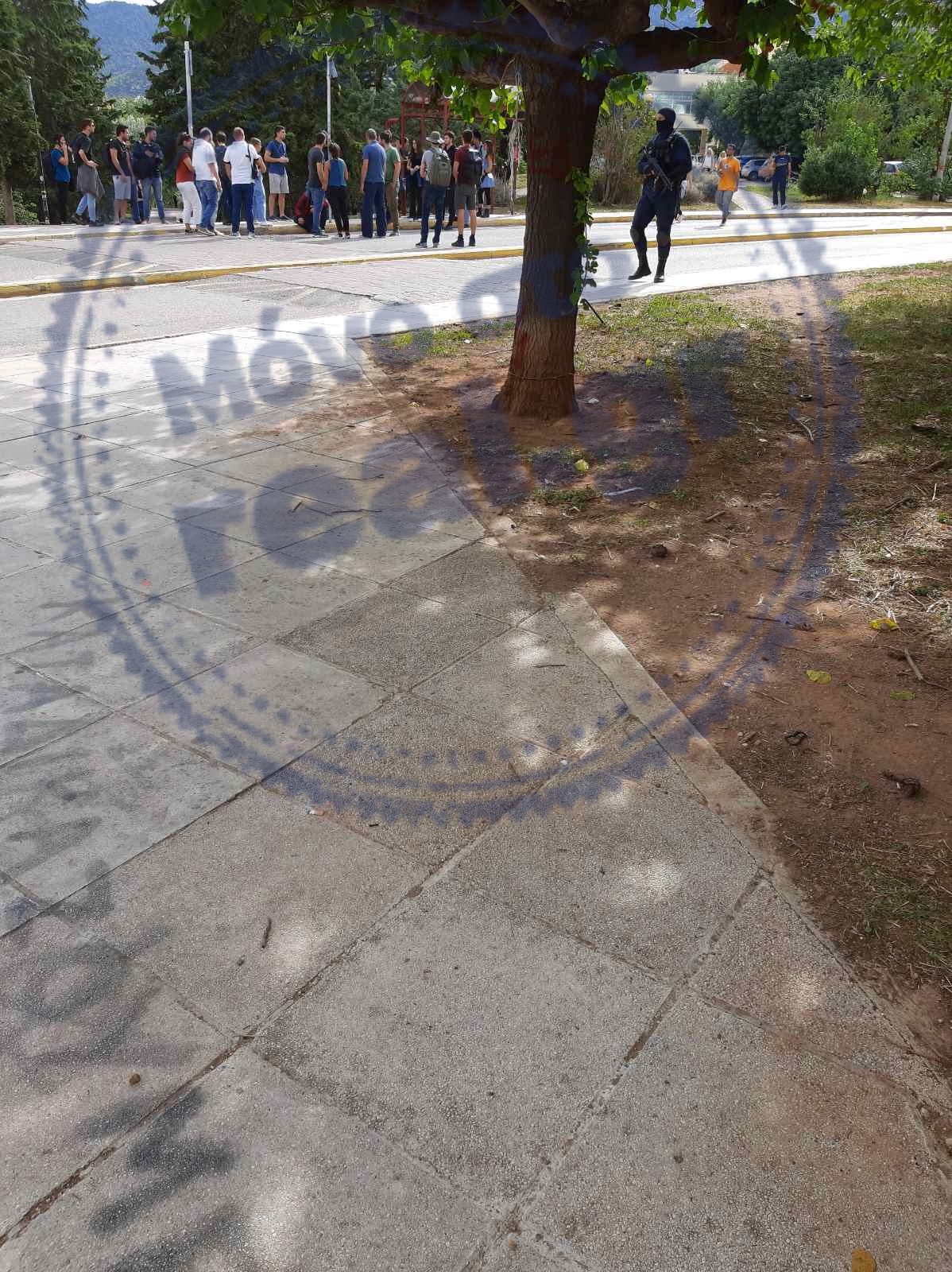 Στο σημείο έχουν σπεύσει ισχυρές αστυνομικές δυνάμεις, ενώ έχουν συγκεντρωθεί και αρκετοί φοιτητές.