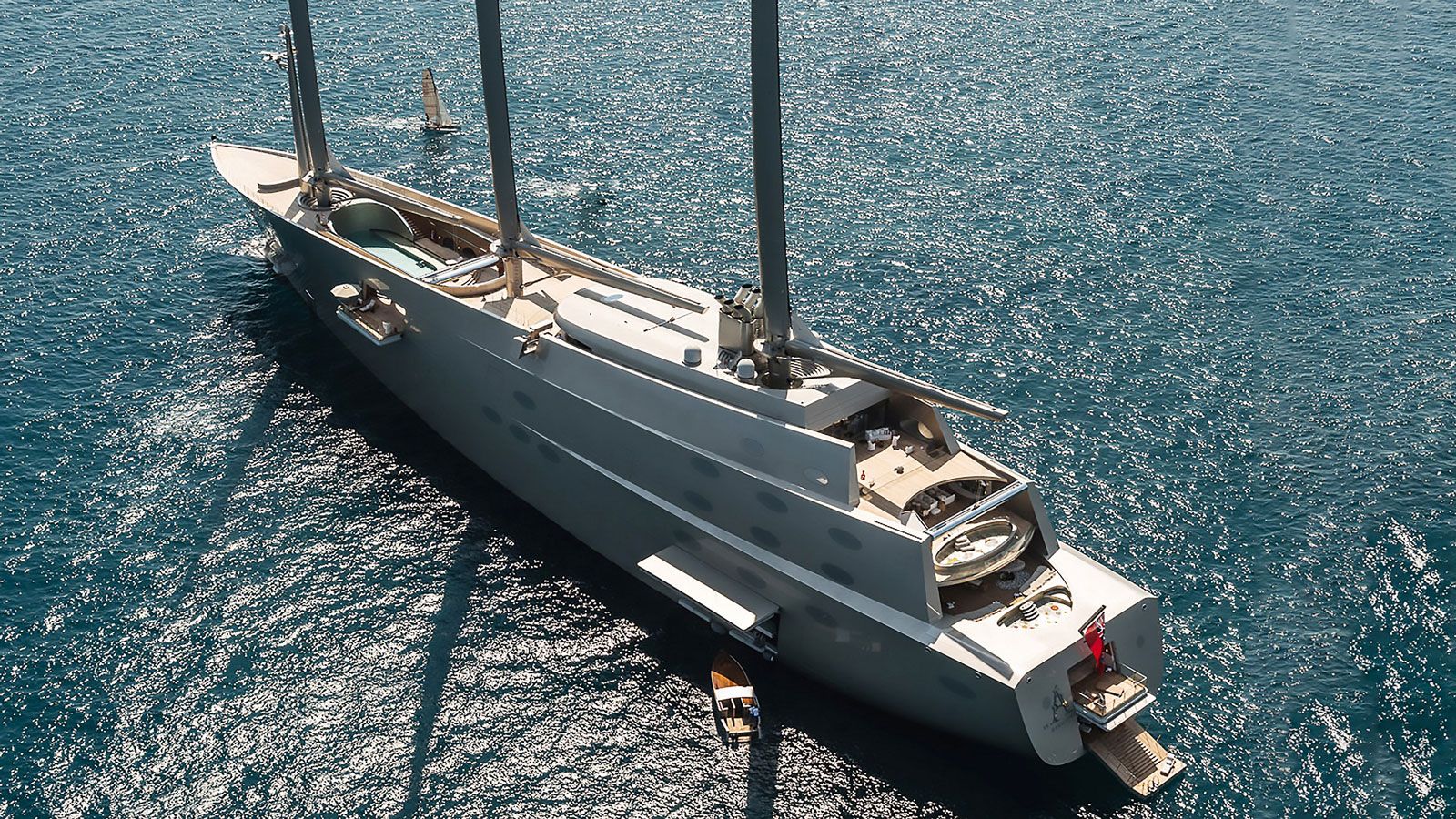 Μάλιστα προκειμένου να αποτραπεί η απομάκρυνσή του, βρίσκεται σε ειδική πλατφόρμα. Το σκάφος, μήκους 143 μ., Sailing Yacht A, εκτιμάται στα 530 εκατ. ευρώ και σχεδιαστής του είναι ο Φίλιπ Σταρκ, ενώ κατασκευάστηκε από τη Nobiskrug στη Γερμανία. Θεωρείται ότι είναι το μεγαλύτερο ιστιοπλοϊκό στον κόσμο.