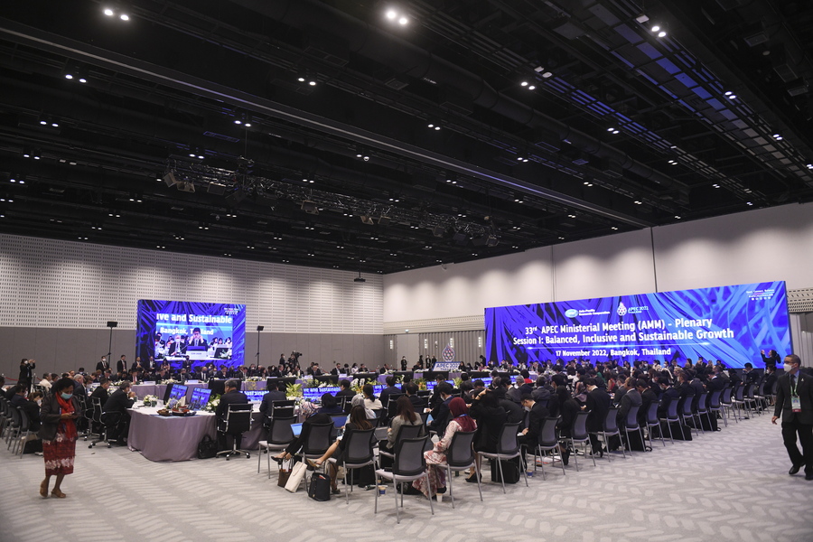Έπειτα από μιάμιση ημέρα συνομιλιών στην Μπανγκόκ τα 21 μέλη του APEC συμφώνησαν σε κοινή ανακοίνωση, η οποία επικρίνει τον πόλεμο και τις οικονομικές αναταράξεις που προκάλεσε παγκοσμίως η εισβολή της Ρωσίας στην Ουκρανία.