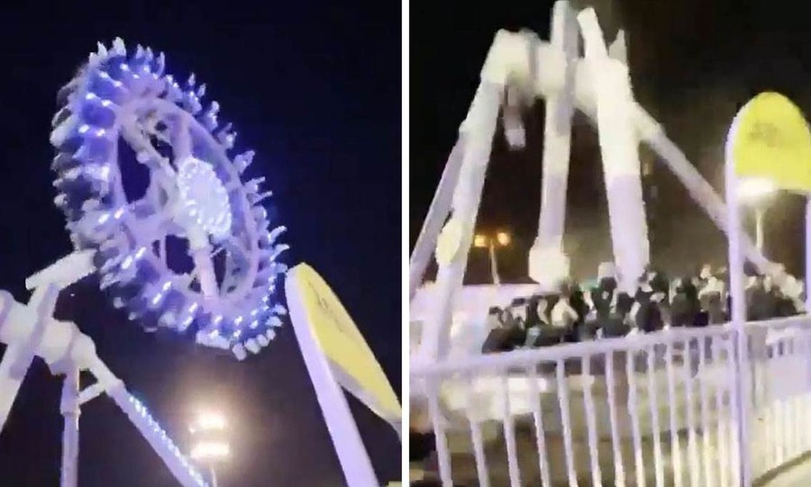Διακρίνονται επισκέπτες να απολαμβάνουν τη βόλτα τους όταν ο στύλος κατέρρευσε με έντονο θόρυβο, την ώρα που οι επιβάτες βρίσκονταν πάνω του.