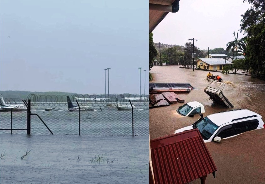 Οι εικόνες δείχνουν αεροπλάνα βυθισμένα στο αεροδρόμιο του Κερνς και έναν κροκόδειλο που φαίνεται να περιπλανιέται στους πλημμυρισμένους δρόμους της πόλης. Παράλληλα, άνθρωποι εγκατέλειψαν τα σπίτια τους μέσα σε βάρκες.