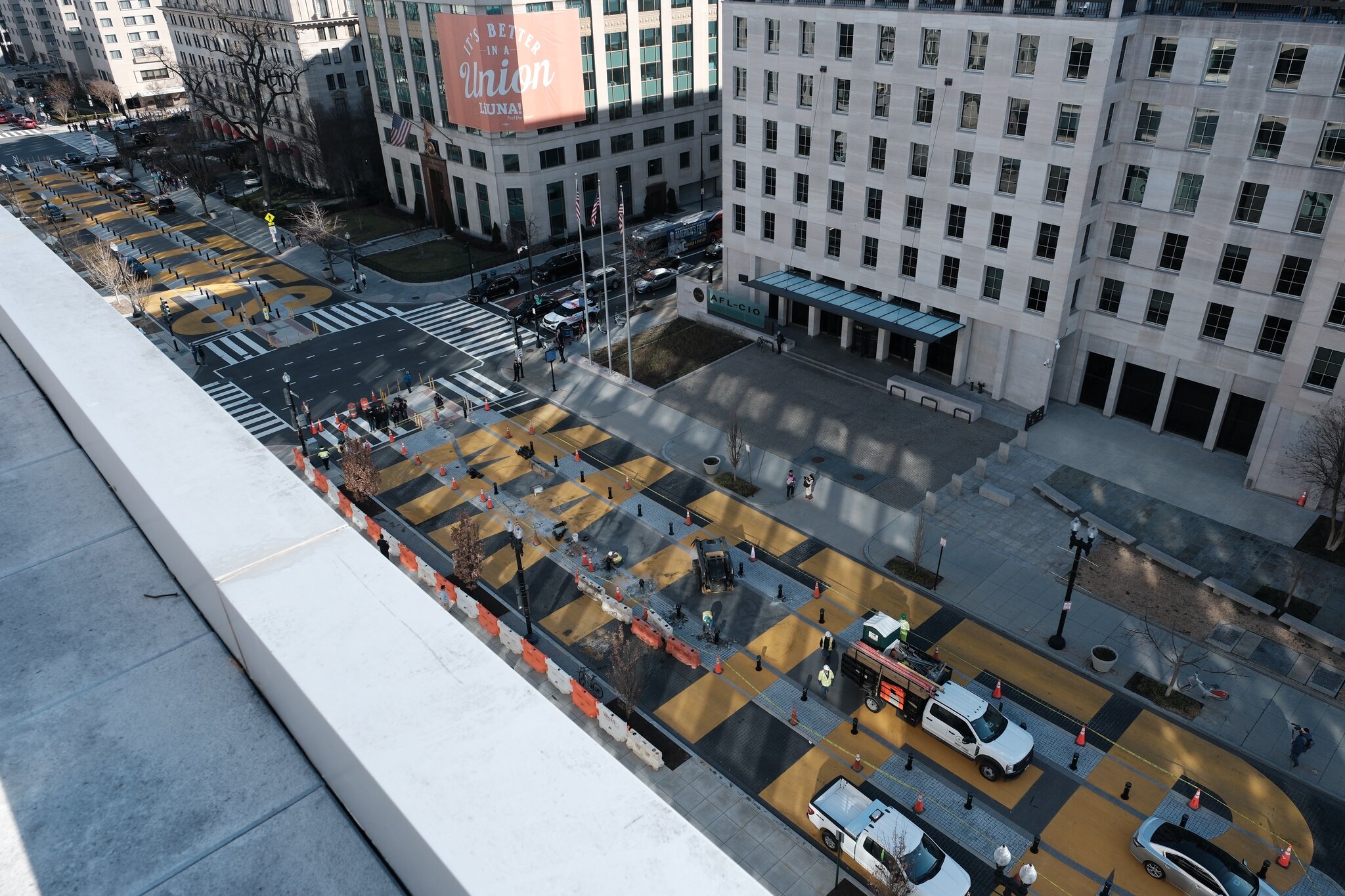 Το όνομα του κινήματος που γιγαντώθηκε το 2020 μετά τον θάνατο του Τζορτζ Φλόιντ, Αφροαμερικανού που σκότωσε λευκός αστυνομικός, ήταν γραμμένο με κίτρινα γράμματα στον δρόμο, όχι μακριά από την έδρα της αμερικανικής προεδρίας.