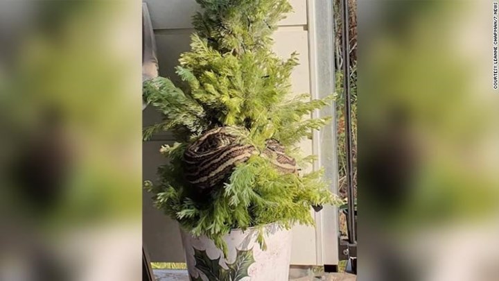 Μόλις επέστρεψε στο σπίτι, βρήκε έναν πύθωνα τριών μέτρων τυλιγμένο στο χριστουγεννιάτικο δέντρο της.
