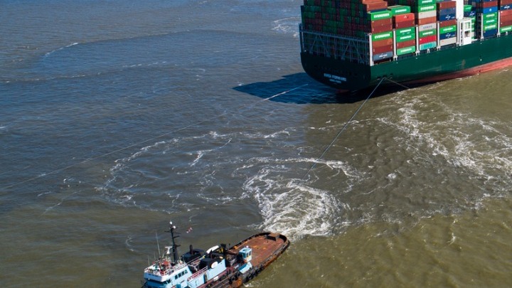 Το δεξαμενόπλοιο με εκτόπισμα 64.000 τόνων απεγκλωβίστηκε χάρη στην επέμβαση «πέντε και πλέον» ρυμουλκών, διευκρίνισε η ΑΔΣ.