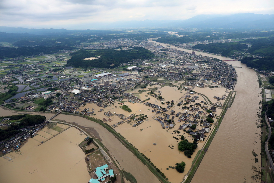 Οι χθεσινές πρωτόγνωρες βροχοπτώσεις στην επαρχία Κουμαμότο στο κεντρικό Κιούσου προκάλεσαν πλημμύρες και κατολισθήσεις.