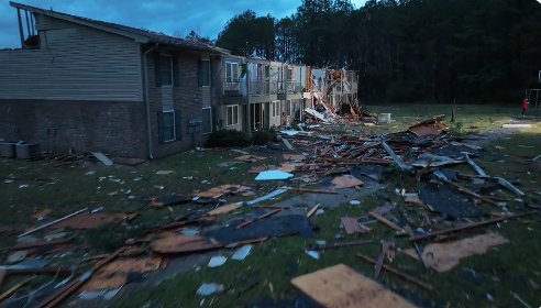 Ο ανεμοστρόβιλος ήταν ένας από τους περίπου 30 που αναφέρθηκαν σε Μισισίπι και Αλαμπάμα, όπου 20.000 σπίτια και επιχειρήσεις έχουν μείνει χωρίς ηλεκτρικό ρεύμα.