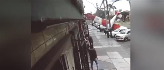 Κάμερα ασφαλείας στη Λίμα του Περού, κατέγραψε εκπαιδευτικό αεροπλάνο έκανε αναγκαστική προσγείωση μέρα μεσημέρι στην καρδιά της περουβιανής πρωτεύουσας.