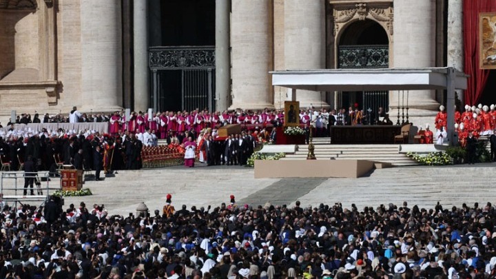 Το Χριστός Ανέστη εψάλη στη Βασιλική του Αγίου Πέτρου, λίγο πριν ολοκληρωθεί η κηδεία του πάπα Φραγκίσκου.