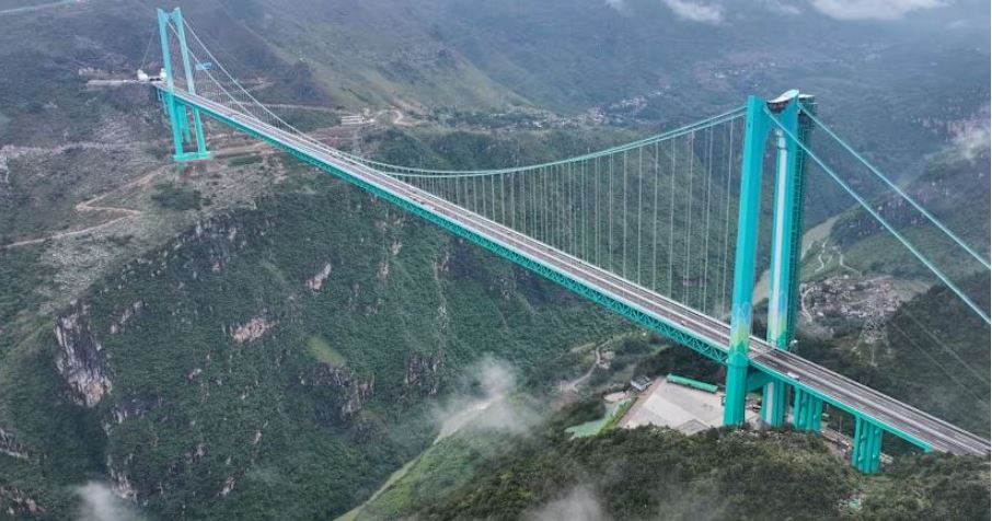 Με μήκος 2.890 μέτρων και εκτεινόμενη πάνω από το Μεγάλο Φαράγγι του Χουατζιάνγκ, γνωστό και ως «η ρωγμή της Γης», αποτελεί μια ακόμη προσθήκη στο ταχέως αναπτυσσόμενο δίκτυο υποδομών της δεύτερης μεγαλύτερης οικονομίας στον κόσμο.