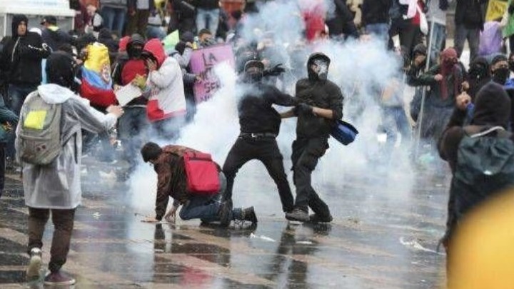 Οι διαδηλωτές έγραψαν συνθήματα με κόκκινη μπογιά στο κτίριο και έριξαν πέτρες φωνάζοντας “αντίσταση”. Η αστυνομία προσπάθησε να διαλύσει το πλήθος με βομβίδες κρότου και δακρυγόνα, όμως οι διαδηλώσεις επεκτάθηκαν σε άλλες συνοικίες της Μπογοτά.