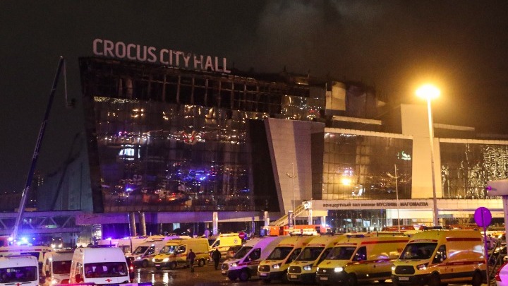 Περισσότεροι από 60 άνθρωποι σκοτώθηκαν και 145 τραυματίστηκαν όταν ένοπλοι άνοιξαν πυρ με αυτόματα όπλα εναντίον πλήθους που είχε συγκεντρωθεί σε αίθουσα συναυλιών, κοντά τη Μόσχα. Πρόκειται για μια από τις φονικότερες τρομοκρατικές επιθέσεις των τελευταίων δεκαετιών στη Ρωσία.