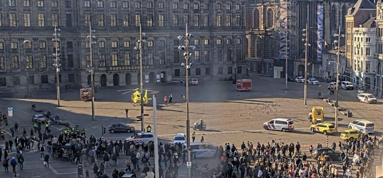 Ο άνδρας αυτός θεωρείται ύποπτος για τον τραυματισμό με διαφορετικά μαχαίρια πέντε ανθρώπων, τους οποίους επέλεξε τυχαία, κοντά στην πολυσύχναστη πλατεία Νταμ το μεσημέρι της Πέμπτης.