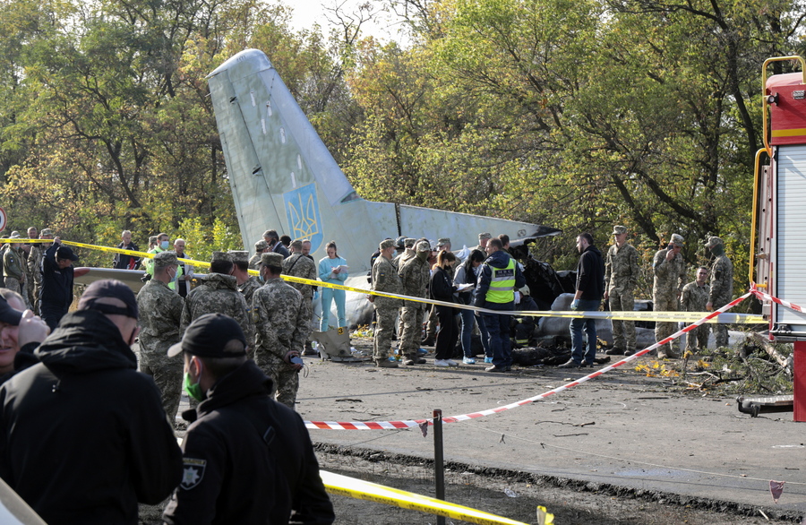 Το αεροσκάφος, ένα Antonov-26, συνετρίβη χθες το βράδυ, κατά τη διάρκεια εκπαιδευτικής πτήσης, σε απόσταση δύο χιλιομέτρων από το στρατιωτικό αεροδρόμιο του Τσουχουίβ, κοντά στο Χάρκοβο.