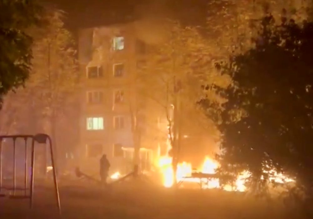 Από τον ρωσικό βομβαρδισμό προκλήθηκαν σοβαρές υλικές ζημιές, ενώ σωστικά συνεργεία έχουν σπεύσει στην περιοχή.