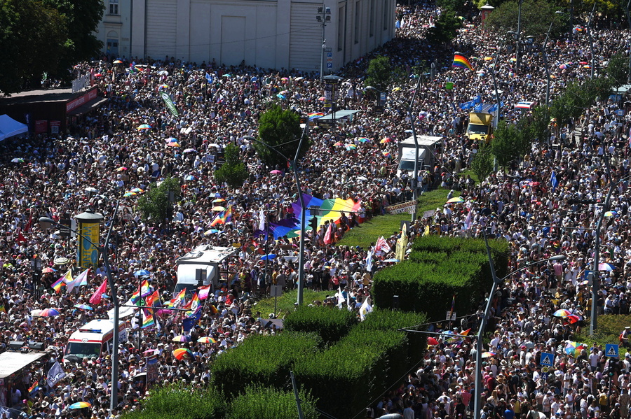 Σε εορταστική ατμόσφαιρα, ένα τεράστιο πλήθος διαδηλώνει σήμερα στη Βουδαπέστη, αψηφώντας την απαγόρευση της αστυνομίας για τη διεξαγωγή της Πορείας Υπερηφάνειας της κοινότητας ΛΟΑΤΚΙ+ (Pride).