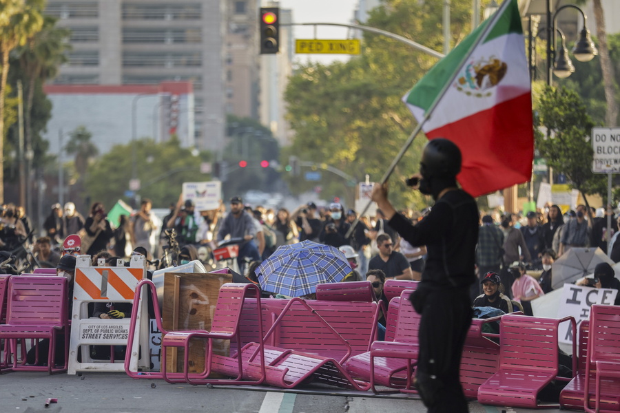 Ομάδες διαδηλωτών, πολλοί από τους οποίους κρατούσαν σημαίες του Μεξικού και πανό με συνθήματα κατά των αμερικανικών υπηρεσιών μετανάστευσης, συγκεντρώθηκαν σε διάφορα σημεία του Λος Άντζελες.