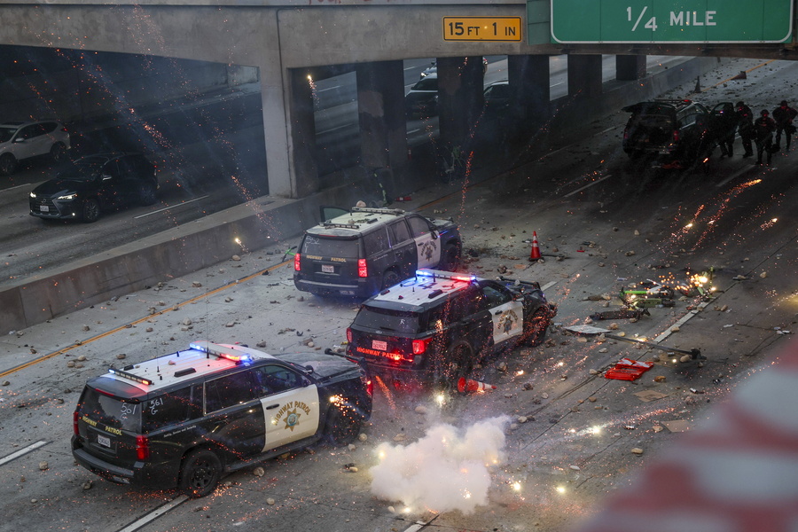 Η Εθνοφρουρά είχε αναπτυχθεί γύρω από κυβερνητικά κτίρια, την ώρα που η αστυνομία και διαδηλωτές συγκρούονταν στη περιθώριο διάφορων κινητοποιήσεων κατά των επιδρομών της ομοσπονδιακής υπηρεσίας μετανάστευσης (ICE) για τη σύλληψη παράτυπων μεταναστών στο Λος Άντζελες.