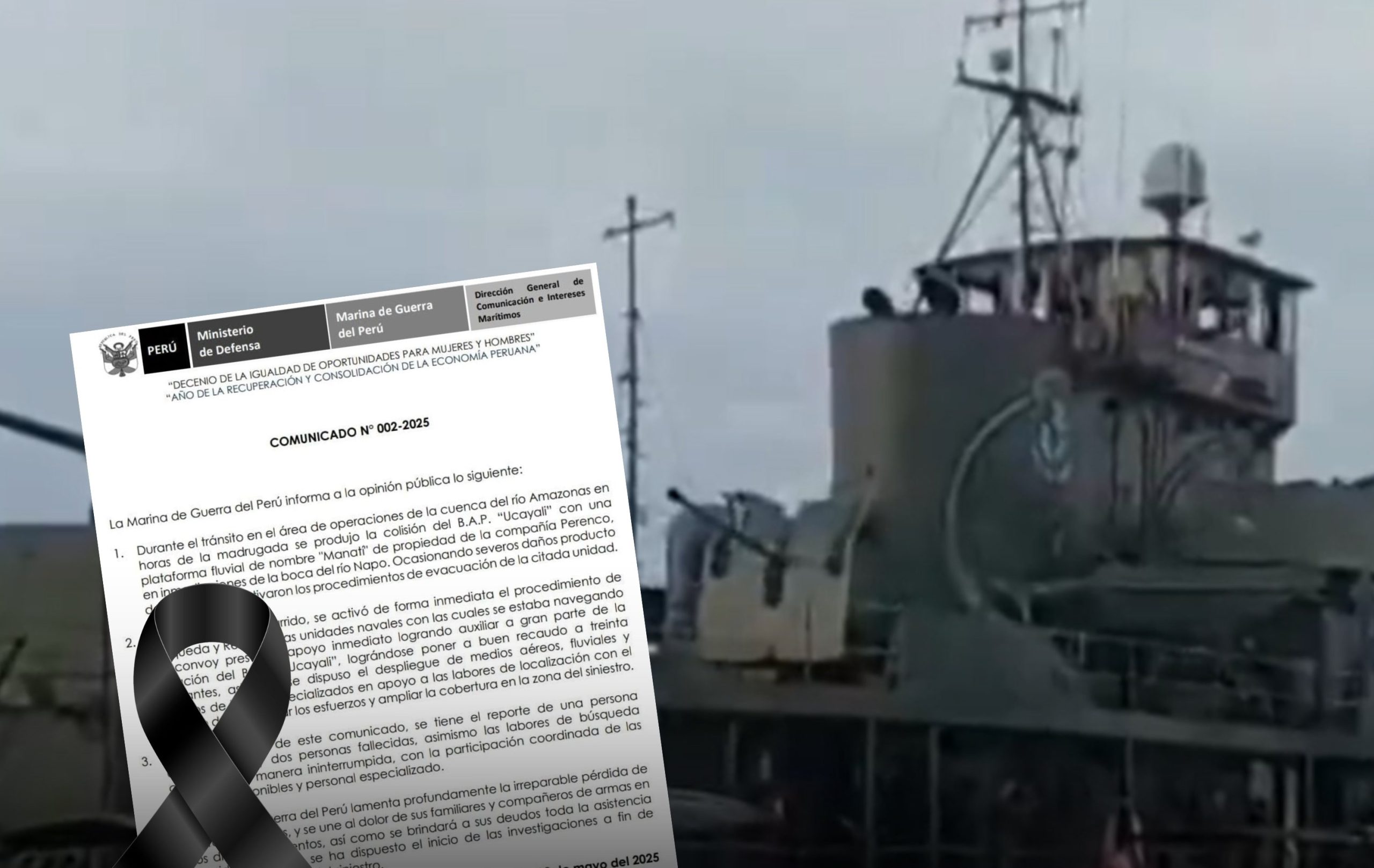 Σκάφος του πολεμικού ναυτικού του Περού συγκρούστηκε με μια πλατφόρμα άντλησης πετρελαίου της εταιρείας Perenco στον Αμαζόνιο, με αποτέλεσμα να σκοτωθούν δύο άνθρωποι και άλλος ένας να αγνοείται, ανακοίνωσε το υπουργείο Άμυνας της χώρας.