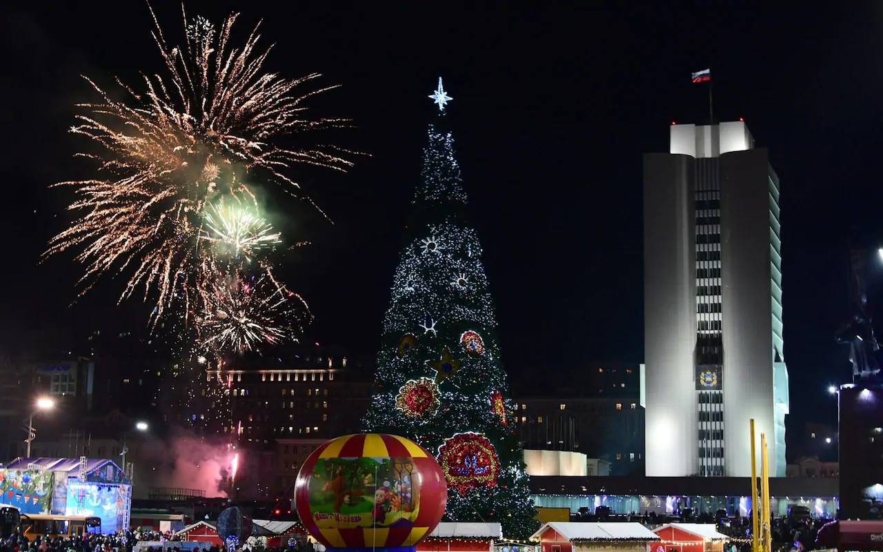 Η νύχτα της Πρωτοχρονιάς στο Βλαδιβοστόκ ήταν πολύ κρύα, παγωμένη, αλλά αυτό δεν επηρέασε τους εορτασμούς καθώς οι κάτοικοι της πρωτεύουσας του Πριμόριε έκαναν πατινάζ στο παγοδρόμιο στο κέντρο της πόλης, διασκεδάζοντας το βράδυ με παραστάσεις μαριονετών, με σώου φωτός, παρουσία DJ και πολύχρωμα πυροτεχνήματα που φώτιζαν τον παγωμένο ουρανό. Το βράδυ της 31ης Δεκεμβρίου, η πλατεία έγινε μέρος ολόκληρου αυτού του σκηνικού, που το εμπλούτισε μια παραμυθένια παράσταση που δόθηκε για τον θρίαμβο του πνεύματος των διακοπών, με τίτλο «Όνειρο χειμερινής νυκτός».