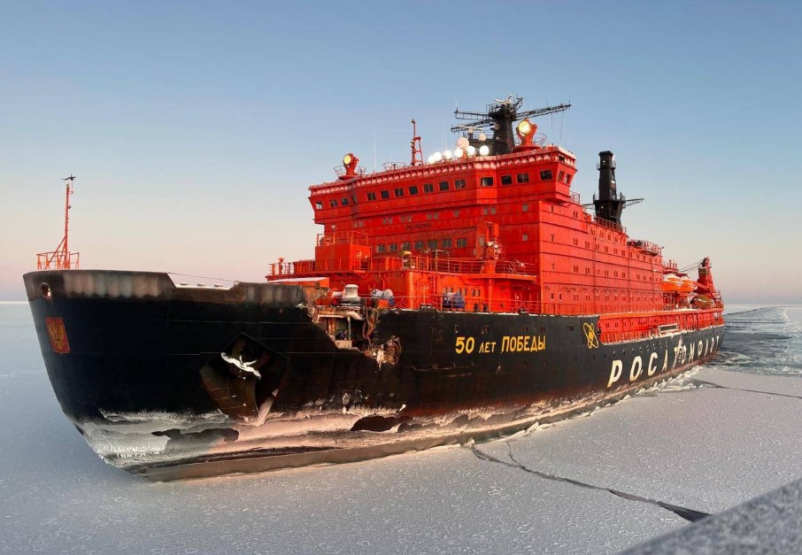 «Το πυρηνοκίνητο παγοθραυστικό συνεχίζει να επιχειρεί κανονικά στα ύδατα της Βόρειας Θαλάσσιας Οδού», ανακοίνωσε η διαχειρίστρια εταιρεία του στόλου Rosatomflot.