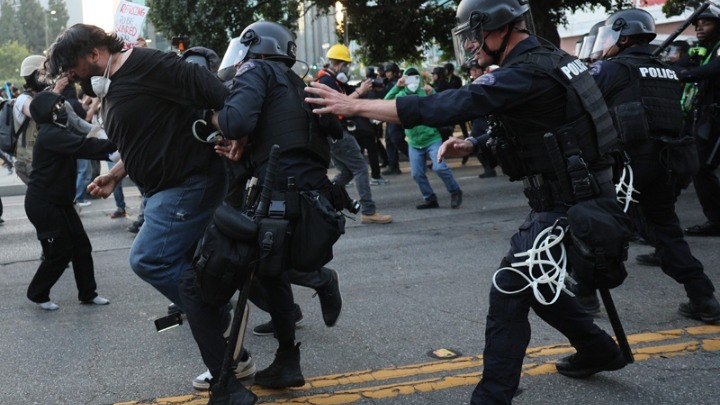 Ωστόσο δυνάμεις της γενικής αστυνομικής διεύθυνσης του Λος Άντζελες (LAPD) επενέβησαν και προχώρησαν σε συλλήψεις κάποιων από τους εκατοντάδες διαδηλωτές μπροστά σε δικαστήριο.