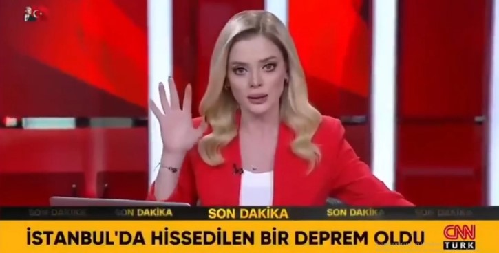 Η δόνηση καταγράφηκε και κατά τη διάρκεια τηλεοπτικής εκπομπής στο CNN Turk, με τη στιγμή του σεισμού να αποτυπώνεται on air.