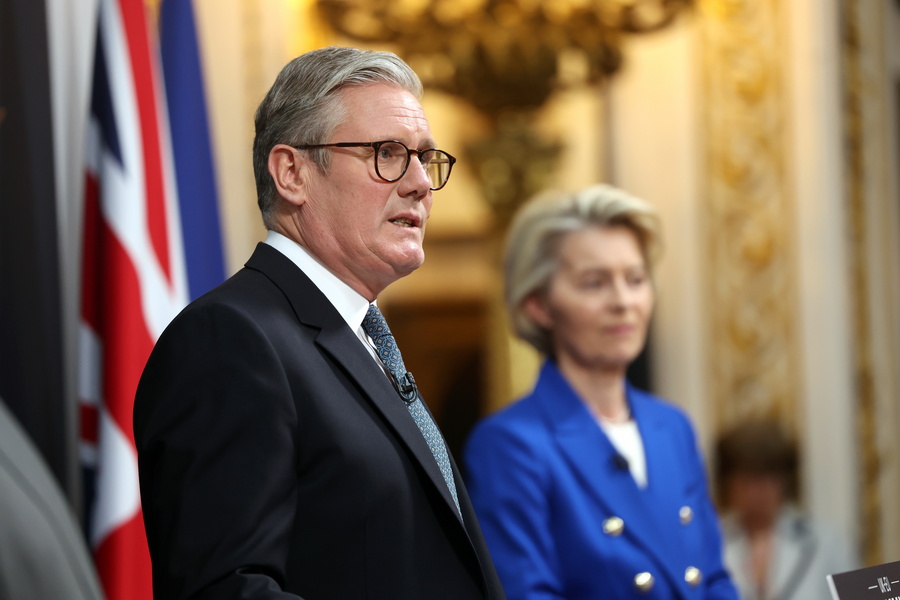 Ο πρωθυπουργός Κιρ Στάρμερ υποδέχτηκε στο Lancaster House την πρόεδρο της Ευρωπαϊκής Επιτροπής Ούρσουλα φον ντερ Λάιεν και τον πρόεδρο του Ευρωπαϊκού Συμβουλίου Αντόνιο Κόστα, όπου λίγο μετά τις 7 π.μ. οριστικοποιήθηκε το πακέτο συμφωνίας.