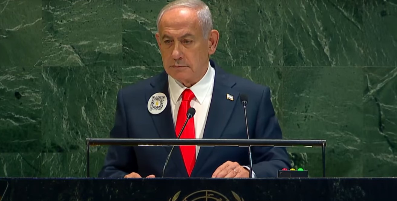 «Πέρυσι σας έδειξαν αυτό τον χάρτη που έδειχνε την πορεία του άξονα του κακού από το Ιράν. Ο άξονας που απειλούσε την σταθερότητα του πλανήτη αλλά και της χώρας μου. Χτυπήσαμε τους Χούθι – ακόμη και εχθές, διαλύσαμε τη Χαμάς, πλήξαμε την Χεζμπολάχ – θα θυμάστε τους βομβητές – πήραν νομίζω το μήνυμα και φυσικά ελέγχουμε την κατάσταση στην Συρία και πάνω από όλα διαλύσαμε το πυρηνικό πρόγραμμα, αλλά και το συμβατικό οπλοστάσιο του Ιράν» είπε στην αρχή της ομιλίας του ο Ισραηλινός πρωθυπουργός.