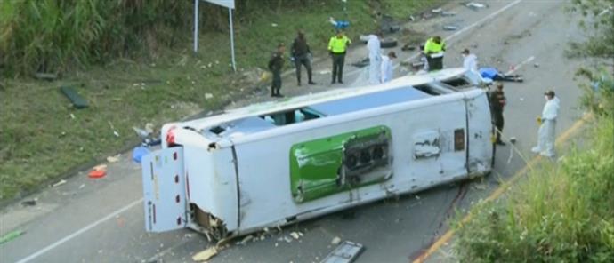 Τουλάχιστον 13 άτομα σκοτώθηκαν και ακόμα είκοσι τραυματίστηκαν σε τροχαίο στο οποίο ενεπλάκη λεωφορείο που μετέφερε ομάδα μπάσκετ, στην Κολομβία.