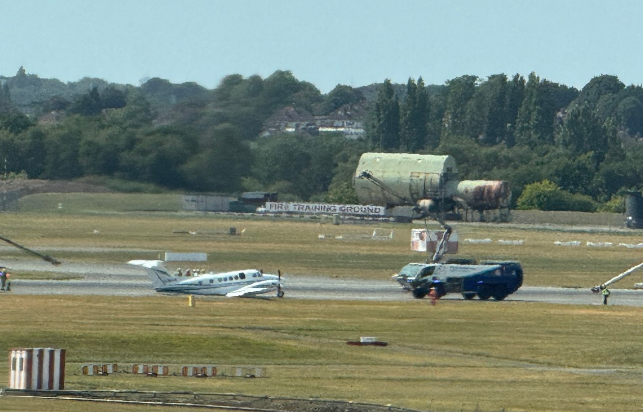 Εικόνες που αναρτήθηκαν στο X δείχνουν ένα μικρό ελικοφόρο αεροσκάφος, με έλικα ακινητοποιημένο, στον διάδρομο προσγείωσης και απογείωσης του έβδομου πιο πολυσύχναστου αεροδρομίου της Βρετανίας.