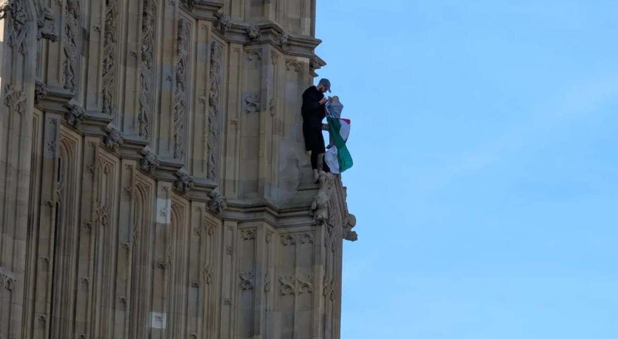 Βρετανία: Συνελήφθη άνδρας που αναρριχήθηκε στον πύργο του Big Ben με παλαιστινιακή σημαία - Real.gr