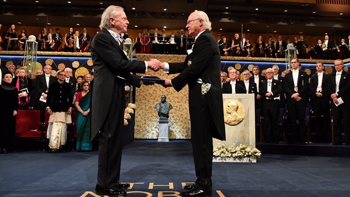 Ο 77χρονος Χάντκε παρέλαβε το Βραβείο Νόμπελ Λογοτεχνίας από τον βασιλιά της Σουηδίας Καρλ Γκούσταφ σε μια τελετή, όπου απονεμήθηκαν τα Νόμπελ Χημείας, Ιατρικής, Φυσικής και Οικονομικών. Το Νόμπελ Ειρήνης απονεμήθηκε νωρίτερα στο Όσλο στον πρωθυπουργό της Αιθιοπίας Άμπι Άχμεντ.