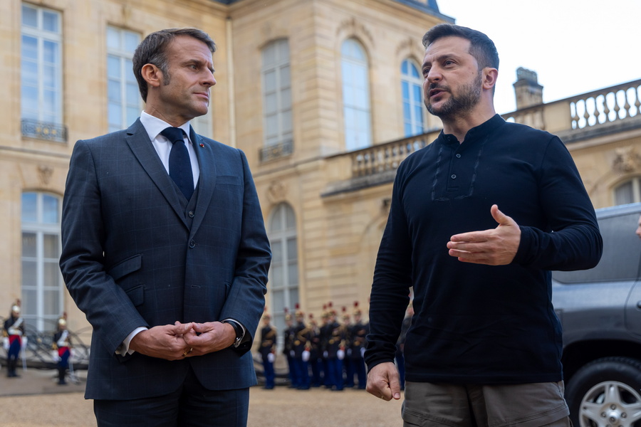 Ο Γάλλος πρόεδρος Εμανουέλ Μακρόν και ο Ουκρανός ομόλογός του αντάλλαξαν θερμή και παρατεταμένη χειραψία πριν τη διμερή τους συνάντηση. Η εκεχειρία “δεν είναι ένα θέμα στις συνομιλίες μας με τους συμμάχους μας”, δήλωσε ο Ουκρανός πρόεδρος στο τέλος της συνάντησης αυτής, αποδίδοντας τις πληροφορίες επ΄αυτού στη ρωσική “παραπληροφόρηση”.