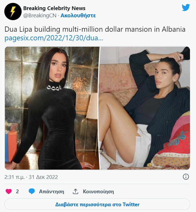 Η Dua Lipa προχωρά στην κατασκευή μιας πολυτελούς βίλας αξίας πολλών εκατομμυρίων δολαρίων στους Αγίους Σαράντα της Αλβανίας.