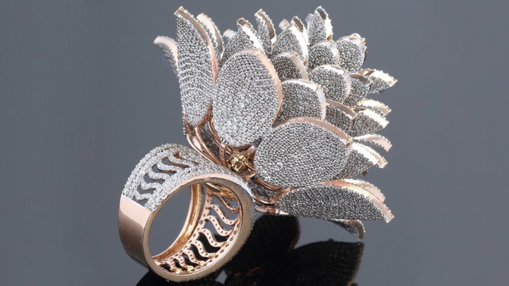 Το κόσμημα, που ονομάζεται «The Marigold – το δακτυλίδι της ευημερίας», μετρά 12.638 διαμάντια και ζυγίζει λίγο παραπάνω από 165 γραμμάρια.