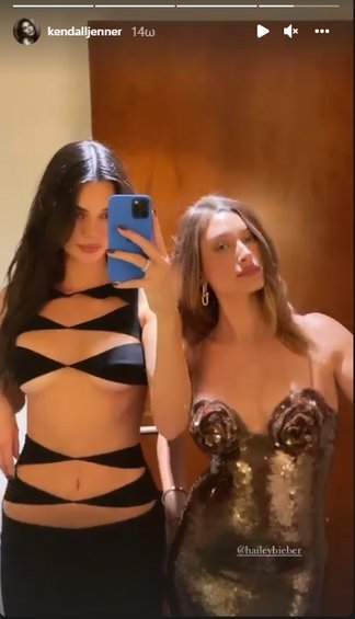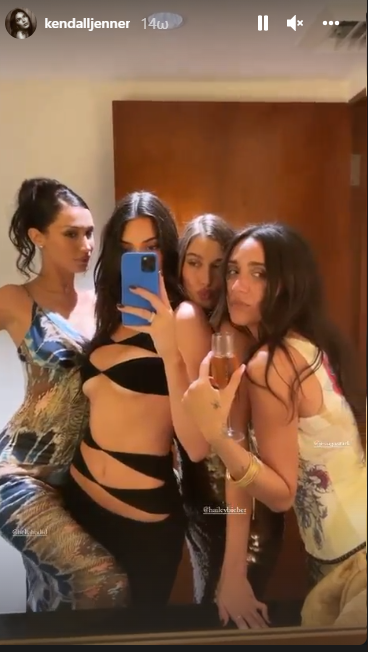 Η Kendall Jenner και οι φίλες της, Hailey Bieber και Bella Hadid, πόζαραν μπροστά σε έναν καθρέφτη, με το φόρεμα της Kendall να τραβάει τα βλέμματα.