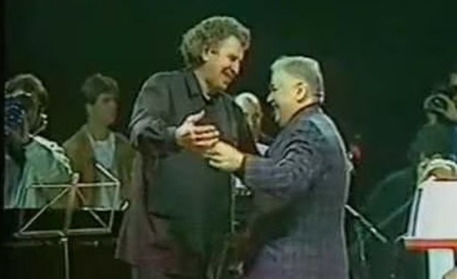 Ο Μίκης Θεοδωράκης και ο Μάνος Χατζιδάκις, μουσικά αστέρια που τότε άρχιζαν να λάμπουν, βρίσκονται εκεί ως προσκεκλημένοι της ιταλικής κυβέρνησης.