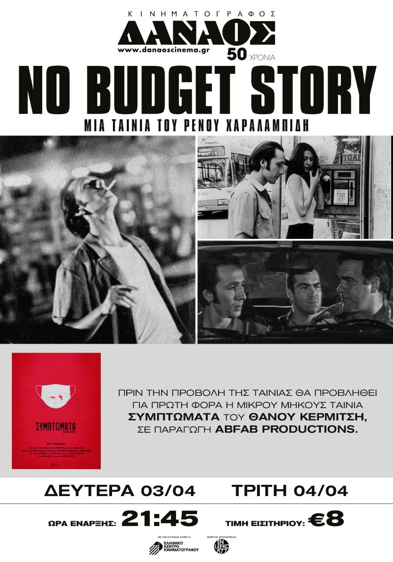 Η ασπρόμαυρη ταινία «No Budget Story» του Ρένου Χαραλαμπίδη, η οποία άφησε την σφραγίδα της στο ελληνικό σινεμά και σε μια ολόκληρη εποχή, έρχεται στον κινηματογράφο «Δαναό» τη Δευτέρα 3 και την Τρίτη 4 Απριλίου, στις 21:45. Η ταινία, που εξυμνήθηκε απο το «Variety» και εγκαινίασε το Ελληνικό Ανεξάρτητο Σινεμά, ξαναπαρουσιάζεται με διαφορετική μουσική.