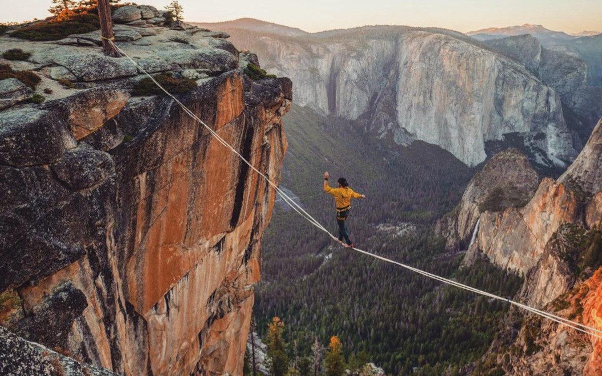 Με τα γυμνά του πόδια και τα δάχτυλα του σχεδόν μουδιασμένα, ο Ράιαν Ρόμπινσον κάνει προσεκτικά βήματα ενώ ακριβώς από κάτω του βρίσκεται μόνο το κενό.