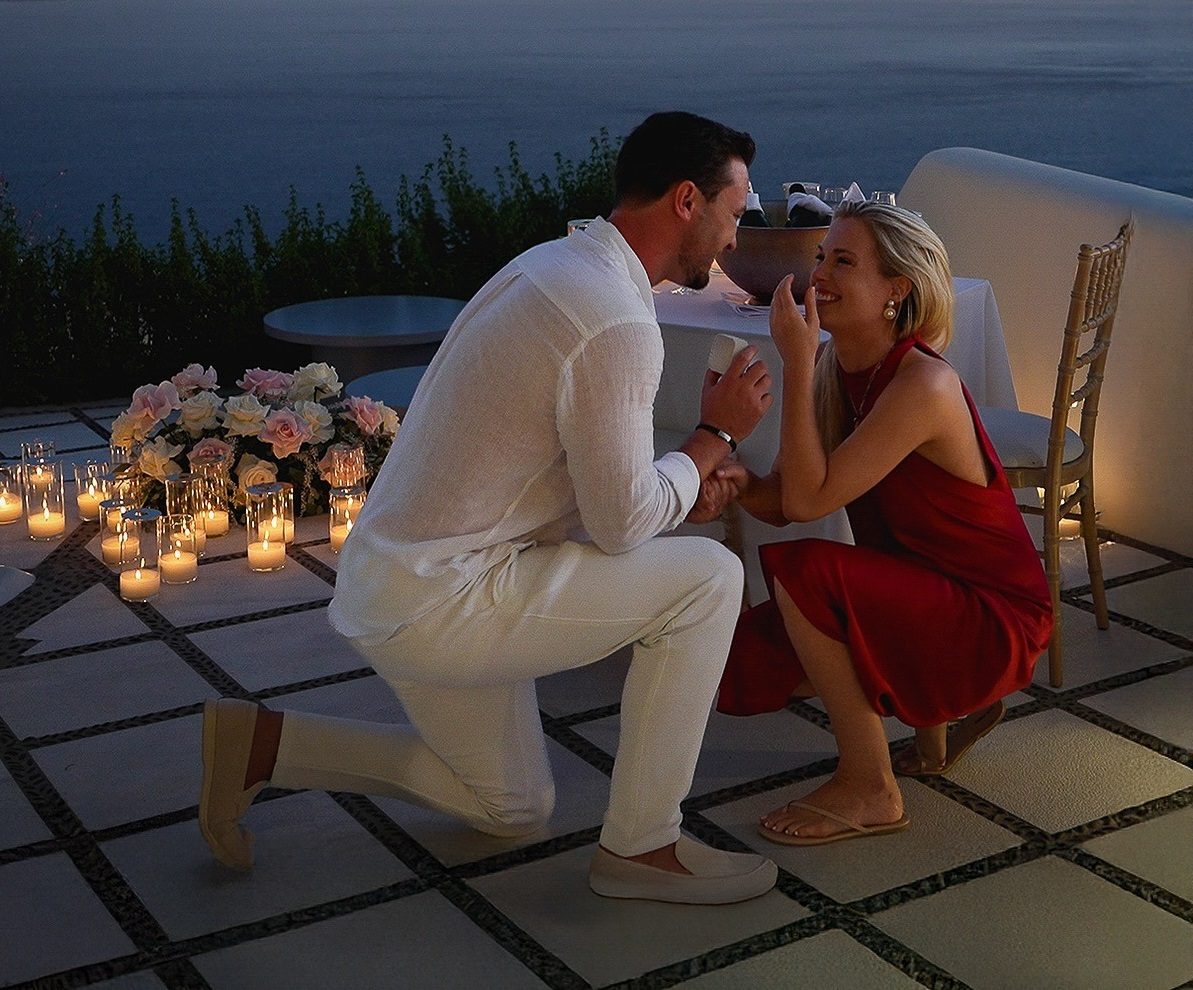 Ο Channing Millerd έκανε την πρόταση γάμου στη Σαντορίνη, με φόντο το γαλάζιο του Αιγαίου, σε ένα ρομαντικό σκηνικό.